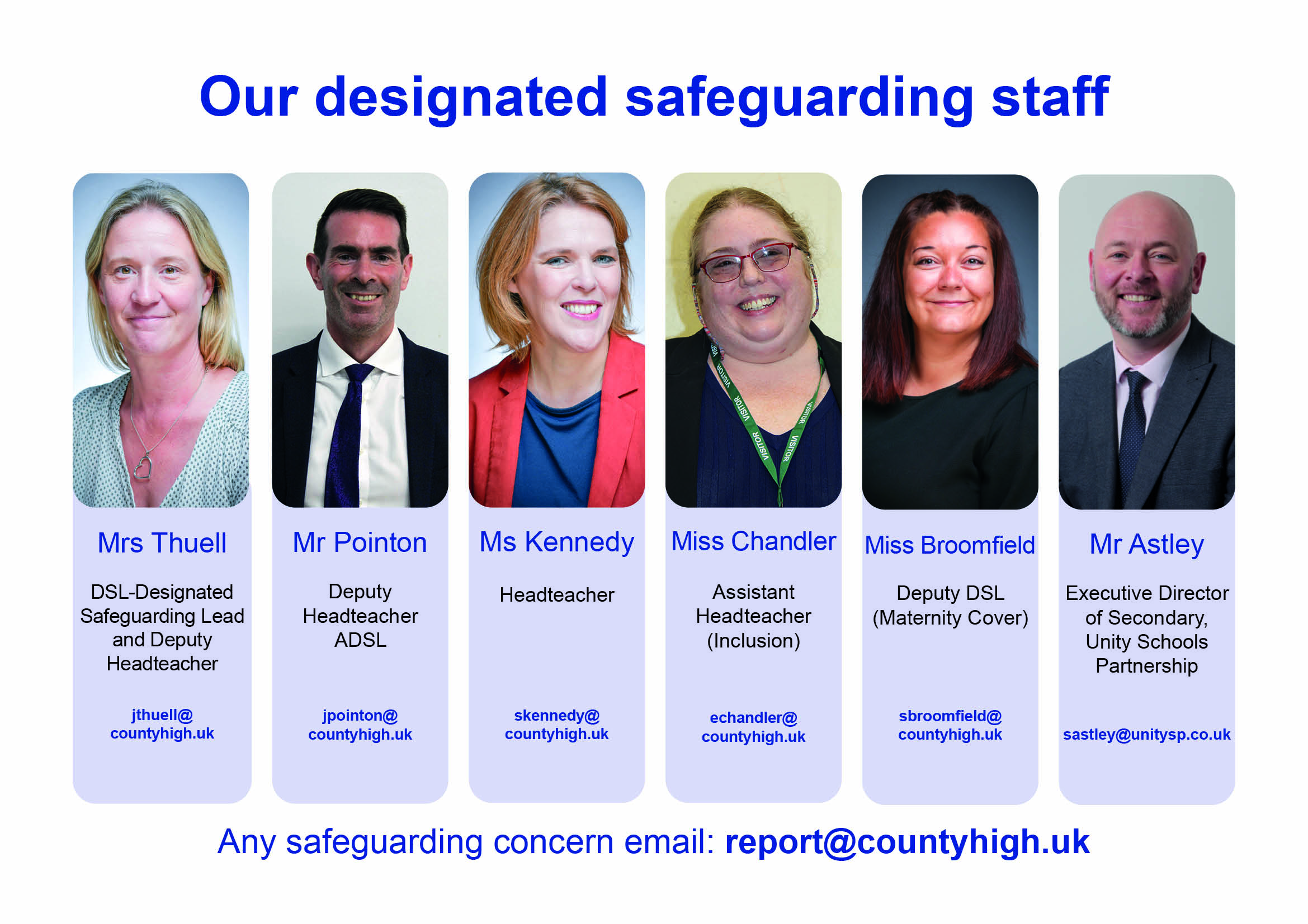 At County High School we consider safeguarding to be everyone’s responsibility and as such our aim is to create an environment within which every student has the opportunity to be healthy, stay safe, enjoy and achieve, make a positive contribution and achieve economic well-being.